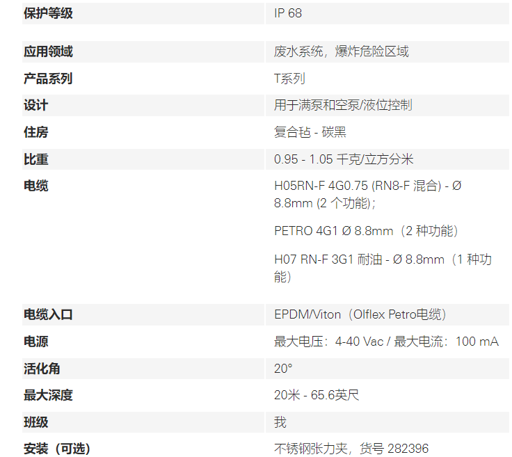 Condor 浮球开关“防爆保护”T系列