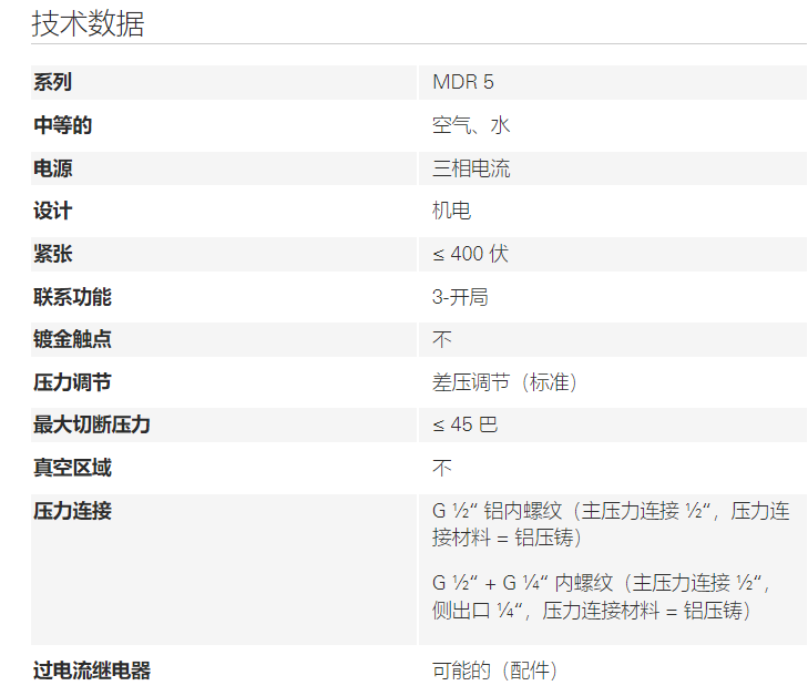 Condor 压力开关MDR 5系列